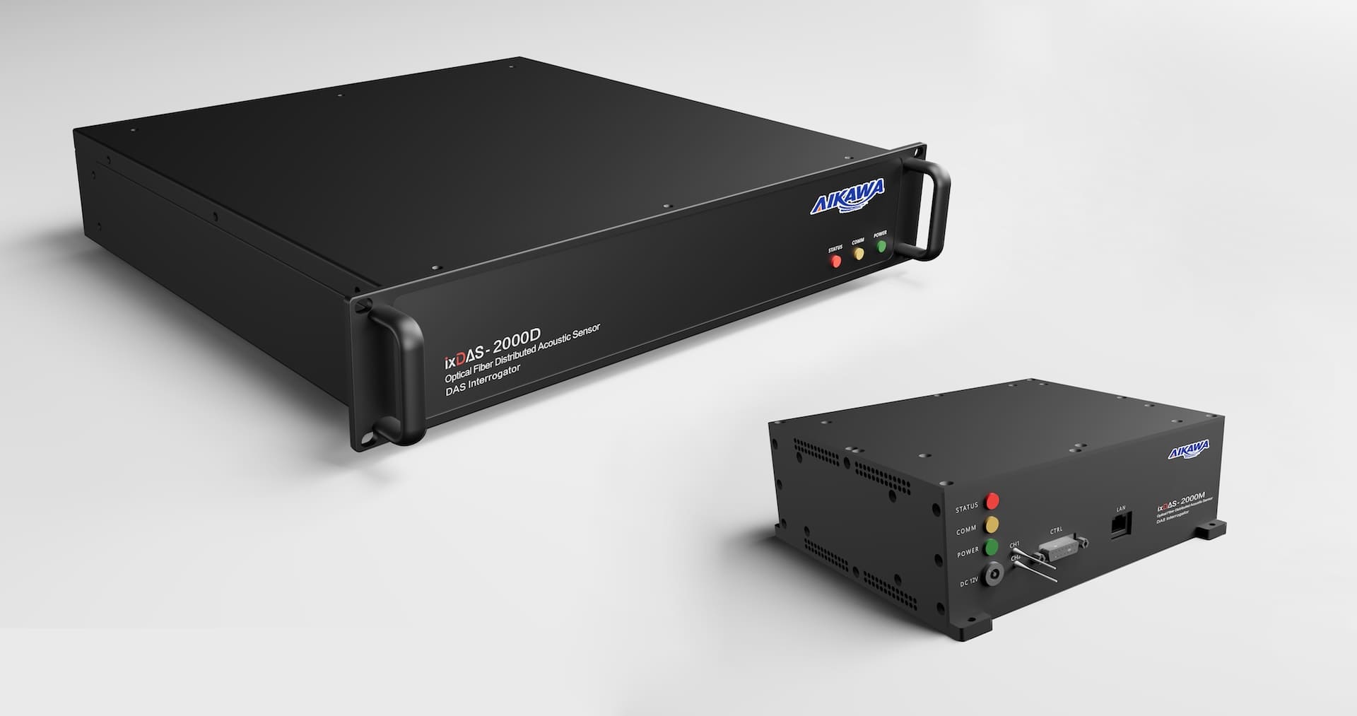 The ixDAS-2000 series distributed acoustic sensor (DAS) interrogators utilize advanced phase-sensitive optical time-domain reflectometry (φ-OTDR) technology, employing optical fibers (cables) as sensors.